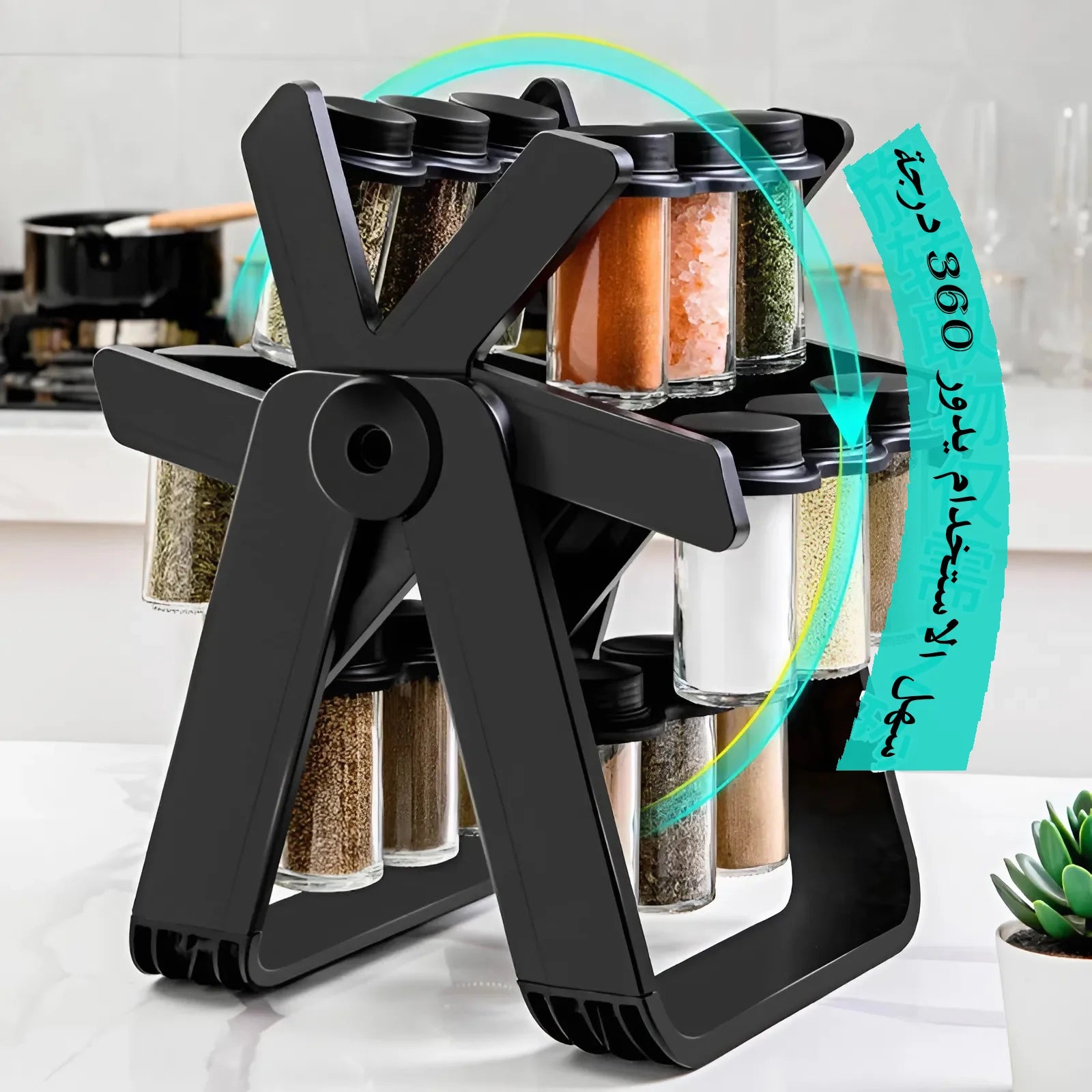 رف التوابل هي حلاً أنيقًا وعمليًا لتنظيم مطبخك. تتميز بتصميم عجلة الدوارة وتأتي مع 18 علبة زجاجية للتوابل، مما يسهل الوصول إلى التوابل المفضلة لديك