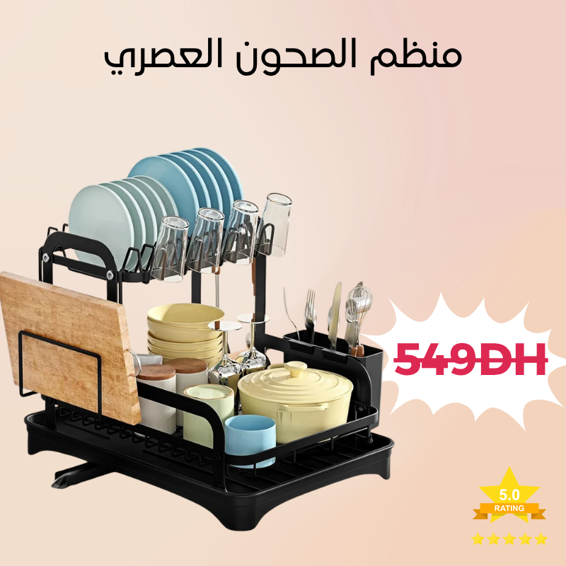 بفضل تصميمه الذكي والمواد عالية الجودة، يمكنك تنظيم الأطباق، الكؤوس، الأواني، وأدوات المائدة بسهولة، مما يوفر لك مساحة إضافية ويجعل تجربة التجفيف أكثر كفاءة.